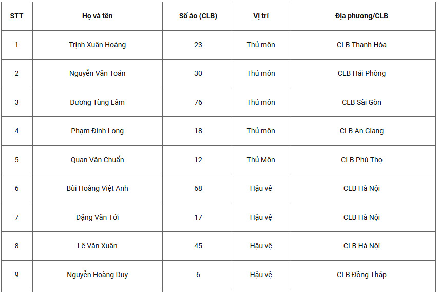 Danh sách 23 cầu thủ đội tuyển Việt Nam thi đấu trận gặp tuyển Australia